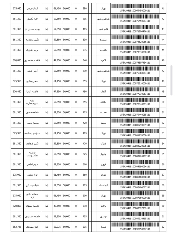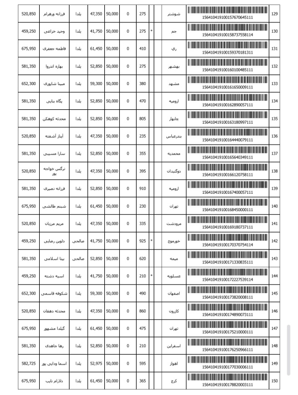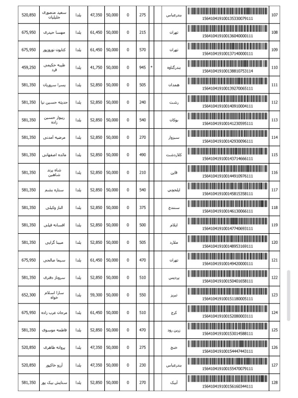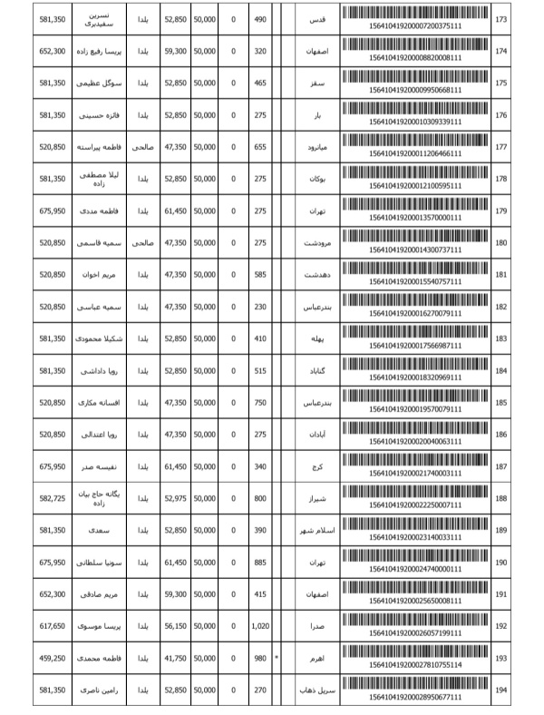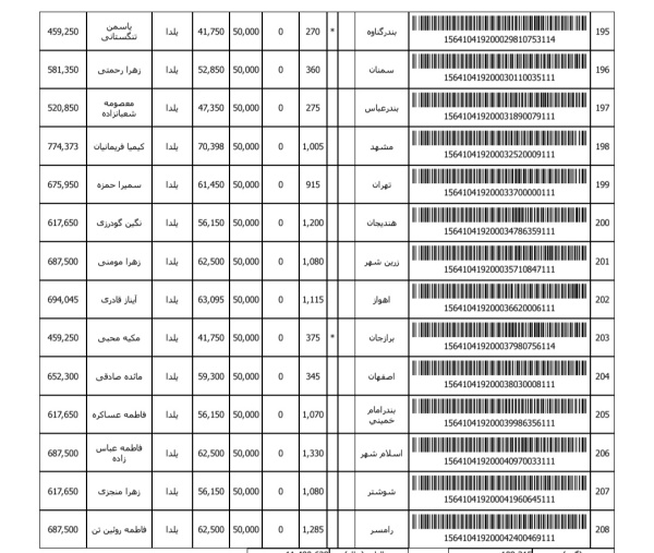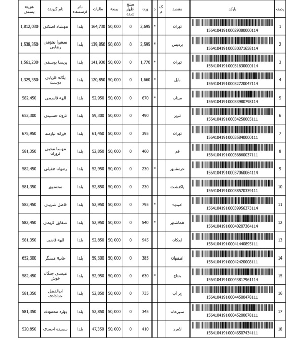 رسید های مرسولات پستی ارسال شده