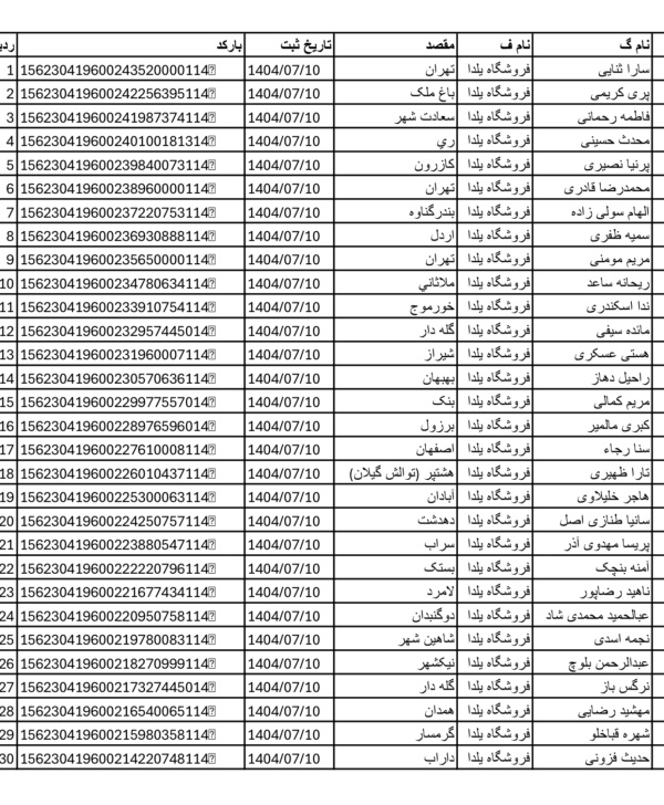 رسید های مرسولات پستی ارسال شده تاریخ 1404/07/10