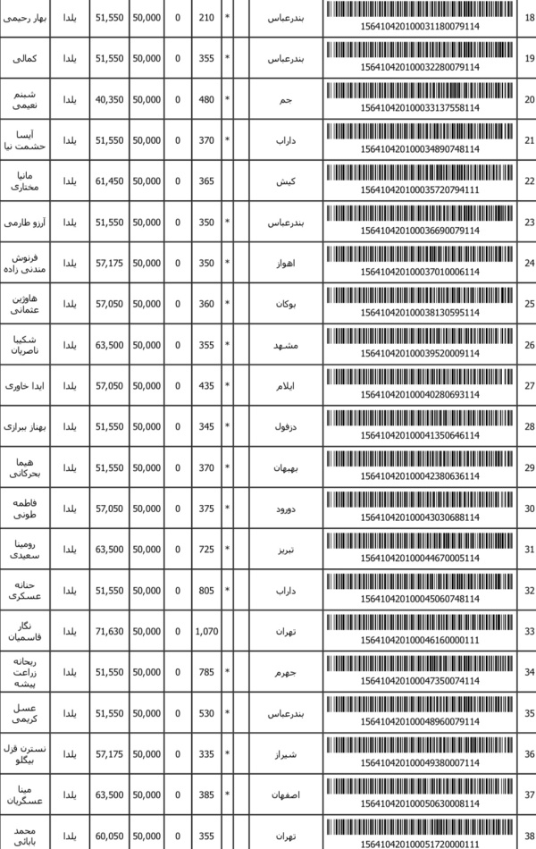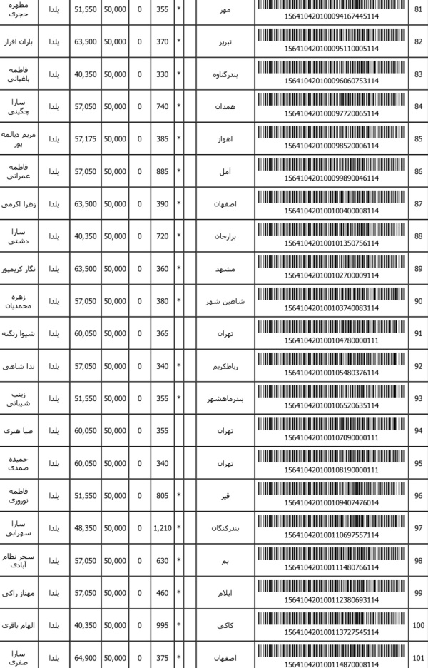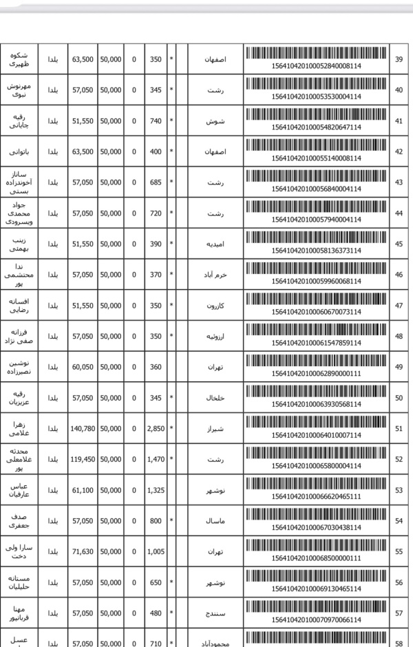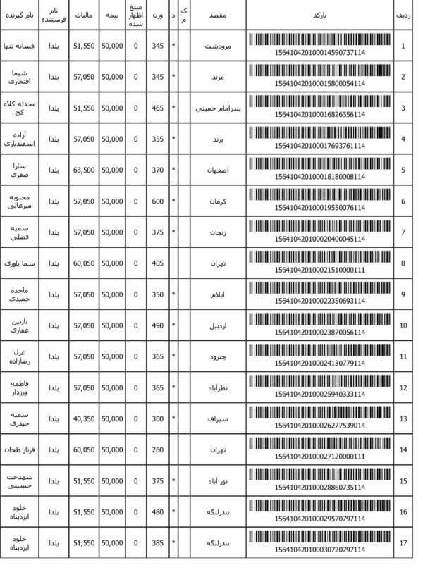 رسید های مرسولات پستی ارسال شده